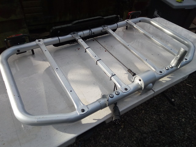 It wasn't suitable as Thule intended though, so first step after putting the base together was remove the right hand upright support where it fouled the door mounted Ladder
