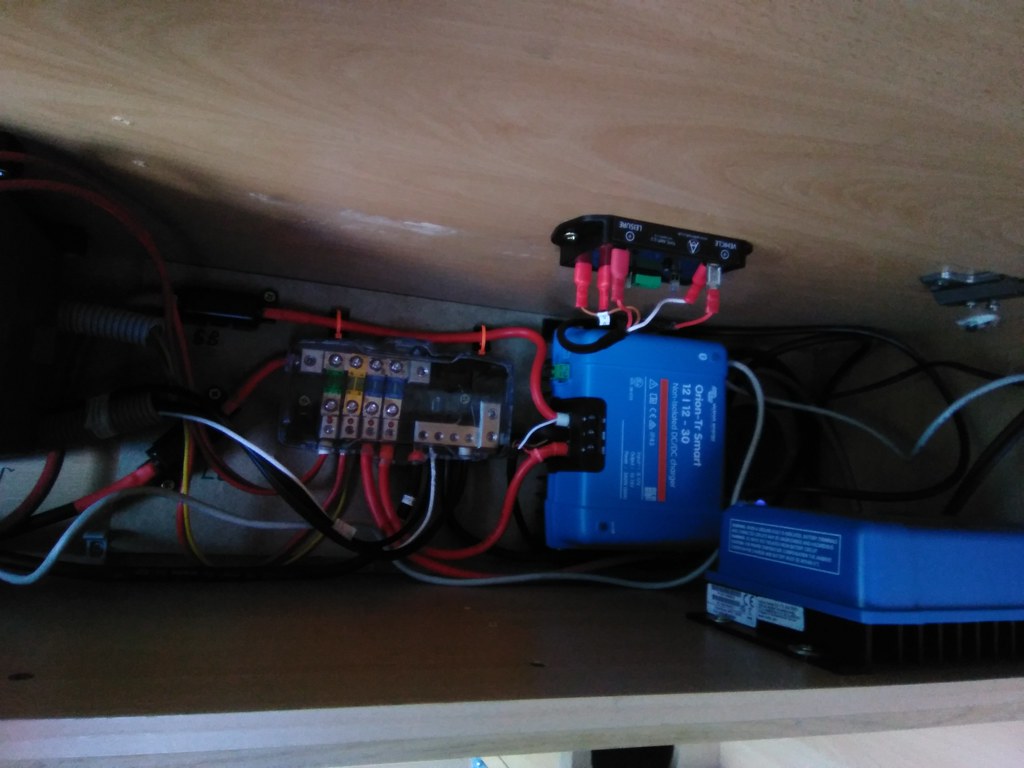 And the BMV-712 display located in a cupboard niche to allow the info to be read directly as well as from the Victron app. The BMV can also control the AMT12-2 via its relay. Current set to manual override, but could be set to have the AMT activate automatically if say the Starter Battery was below 12V, for example. All about the flexibility :)