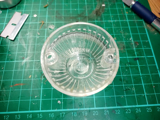 I remembered a couple of years ago I had some corrosion in the top marker lights due to a cracked lens. So decided to remove the lens to check size for replacements.